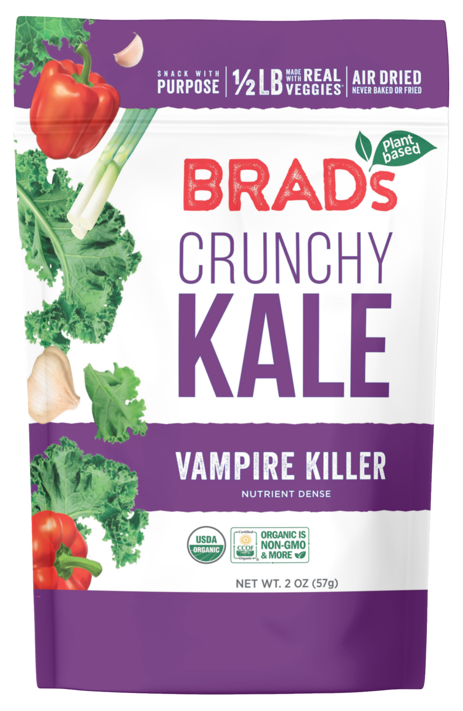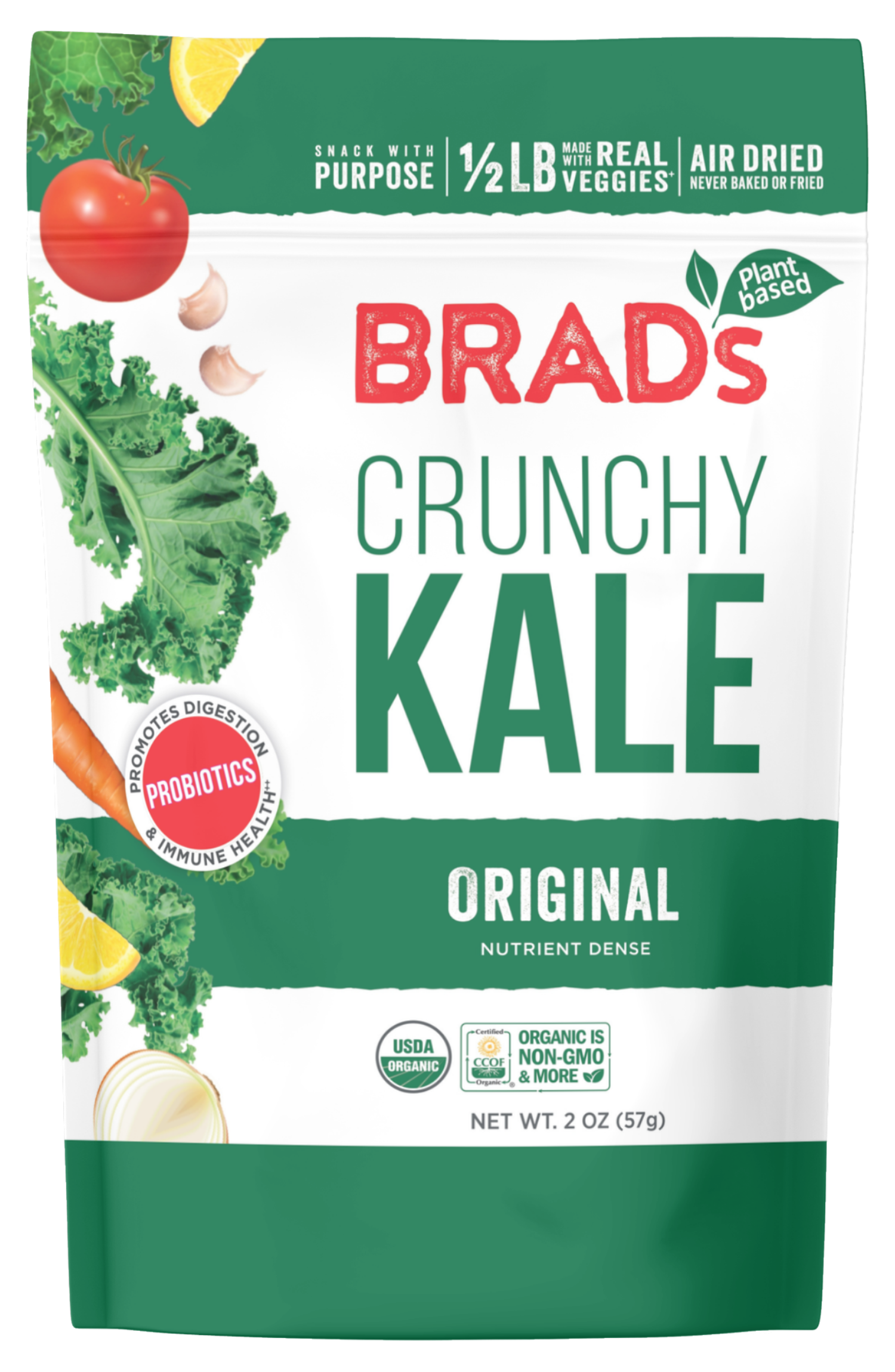 Brad’s is all about the plants—no animals involved! Fresh veggies, fruits, seeds, nuts, spices, and the occasional touch of probiotics. With Brad’s, you’re eatin’ vegan.