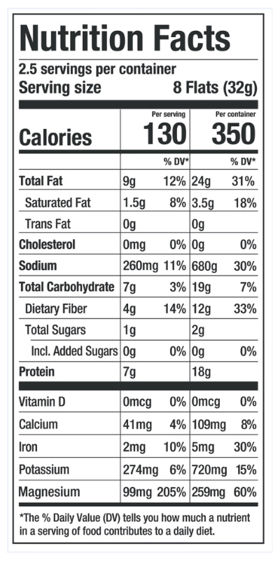 INGREDIENTS: Cauliflower, Chickpea Broth (Water, Chickpea, Salt), Pumpkin Seed, Flax Seed, Sunflower Seed, Apple Cider Vinegar, Chia Seed, Himalayan Salt, Dry Onion, Lemon powder. Read Less